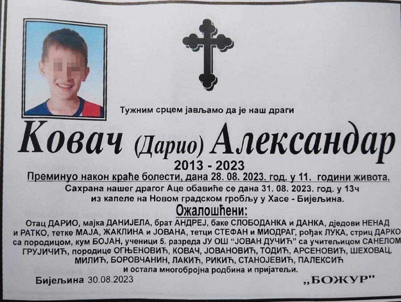 Danijela Ognjenović Kovač iz Bijeljine i njen suprug Dario nisu ni slutili da će se obična glavobolja, njihovog sina Aleksandra (11), završiti kobno nakon, kako ona kaže, nemara doktora.