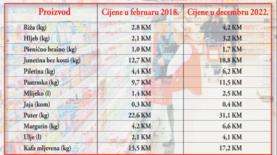 Troškovi života građana Bosne i Hercegovine u posljednjih nekoliko godina veći su za 50 posto, a posebno zabrinjava trend poskupljenja osnovnih životnih namirnica.