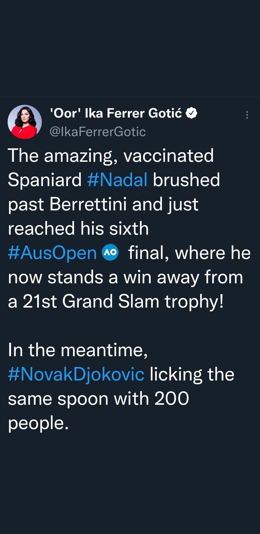 Just got bullied into deleting a tweet on #NovakDjokovic and his unsafe #covid practices. I never get bullied into anything. But I DO MIND receiving 100 threatening texts within 30 min about 'new genocide against my children'. Are you guys insane? @DjokerNole manage your fandom!