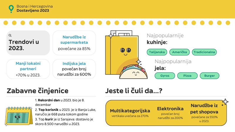 Što se tiče gradova u BiH, broj dostavljenih narudžbi naviši je u Sarajevu i Banjaluci, dok Bijeljina i Tuzla bilježe rast od 40 odsto više narudžbi u odnosu na prošlu godinu.