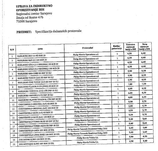 Portparol UIO BiH Ratko Kovačević potvrdio je za CAPITAL da su dobili odluku „Phillip Morrisa“ o povećanju maloprodajnih cijena njihovih proizvoda.