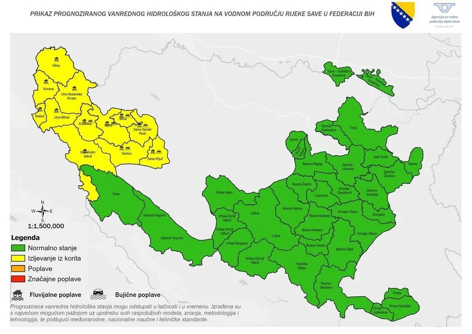 Pozvali su nadležne institucije da prate situaciju i postupaju u skladu s ovlastima, pridržavajući se operativnog plana odbrane od poplava u Federaciji Bosne i Hercegovine. Službama koje provode mjere zaštite su preporučili dodatni oprez. Obratili su se i civilnoj zaštiti. "Nadležne službe civilne zaštite trebaju upozoriti stanovništvo na područjima uz rijeke, koje nemaju izgrađene zaštitne vodne objekte, na opasnost prilaska obalama usljed mogućih povećanja dubina i brzine tečenja vode u rijekama te pravovremeno obavijestiti s uputama i smjernicama za ponašanje kako bi stanovništvo moglo provesti mjere u cilju smanjenja šteta od djelovanja vode", navedeno je u jučerašnjem upozorenju Agencije za vodno područje Jadranskog mora. Navedeno upozorenje je jučer u 12 sati objavljeno na internetskoj stranici Agencije, ali nije dostavljeno Klix.ba. Prema svemu sudeći, nije dostavljeno niti jednom drugom bh. mediju jer ga niti jedan drugi medij nije ni objavo. S druge strane, iz Agencije za vodno područje rijeke Save su 2. oktobra na svojoj internetskoj stranici objavili da su od 3. do 4. oktobra moguće poplave na području Bihaća, Bosanske Krupe, Sanskog Mosta i Ključa.