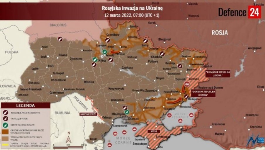 Mediji u Poljskoj objavili su svoju mapu ruskog napredovanja u Ukrajini za 12. mart.