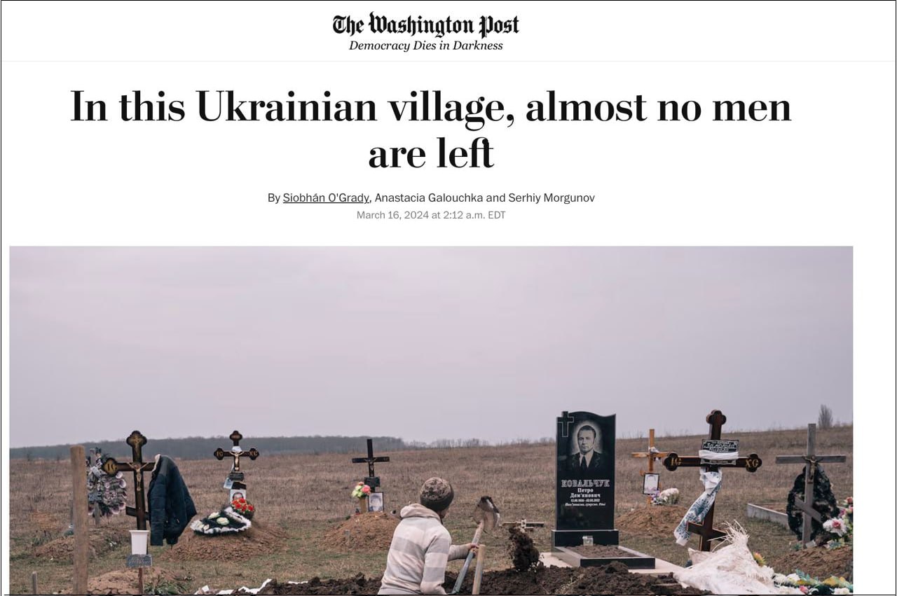 List je kao primjer izdvojio selo Makov, u regionu Hmeljnicki u zapadnoj Ukrajini, gdje su praktično svi muškarci stradali u sukobu, ranjeni ili nestali, dok ono malo preostalih progone regrutni oficiri.